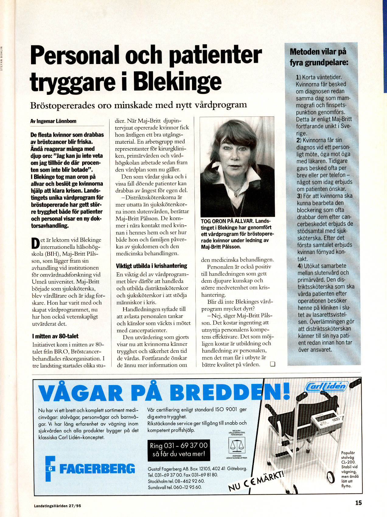 Intervju med Maj-Britt Påhlsson om nya rön 1995. Tidningen Landstingsvärlden.
