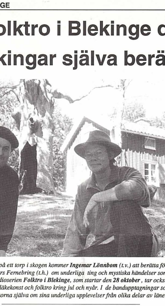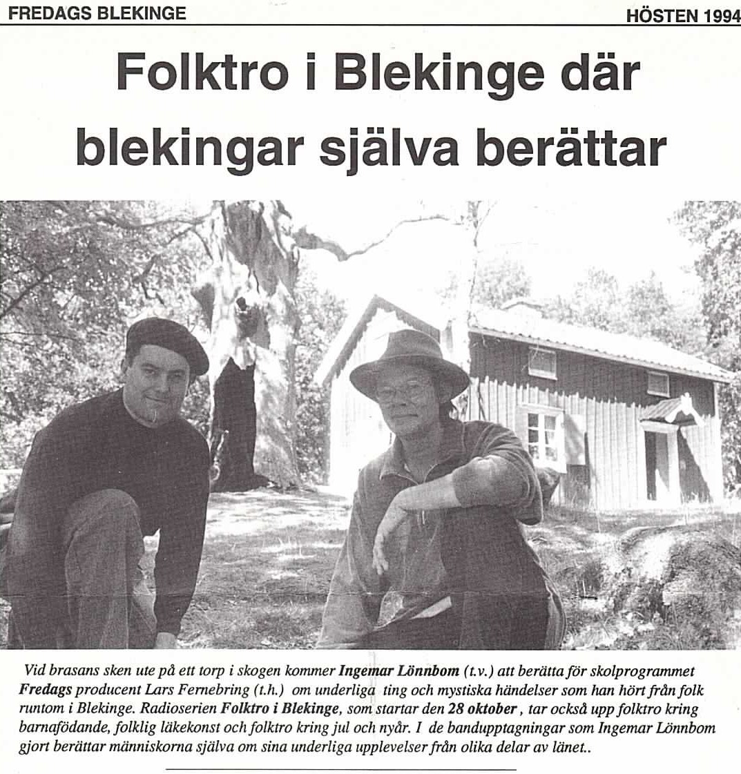 Om du är född i mitten på 1980-talet finns det en chans att du lyssnade på en serie UR-program som handlade om folktro i Blekinge när du gick på mellanstadiet (om du bodde i Blekinge, förstås). Producent för programmen var Lars Fernebring, som på 90-talet skötte den lokala skolradion, som vid den här tiden hade egen sändningstid i P4-kanalen.
