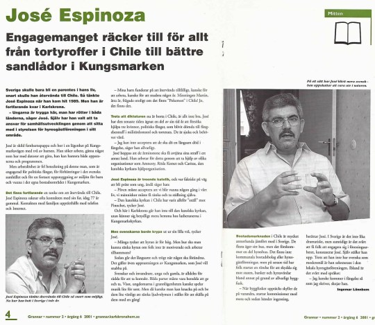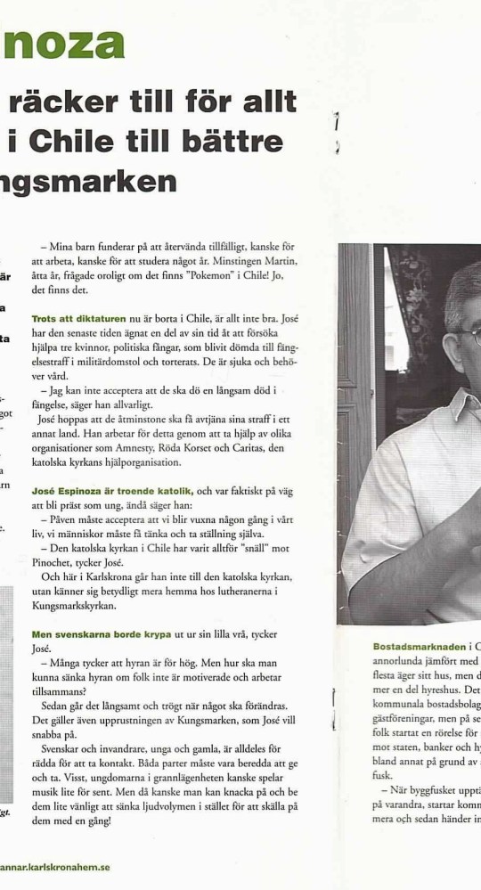 Ännu ett intressant levnadsöde jag har fått möta tack vare skrivandet. Jose Espinoza i Karlskrona, som jag intervjuade för tidningen Grannar år 2001.