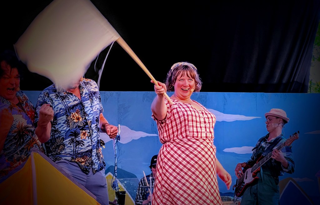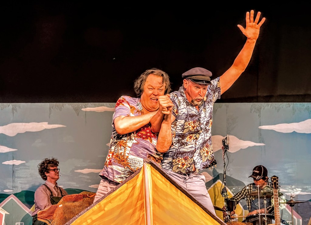 Skrävle teatergrupp håller upp en skrattspegel för en galen omvärld. Varken uppmärksamhetsgalna swishjournalister eller kommunala byråkrater som vänder kappan efter (den politiska) vinden undgår gruppens vänliga men träffande satir. Det är omöjligt att värja sig för denna mycket charmiga uppsättning, som tyvärr redan har gjort sitt sista applådtack för säsongen.